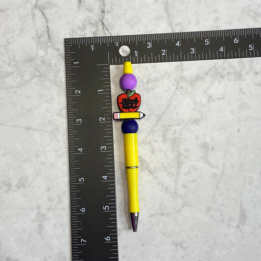 Yellow Beaded Pen with Apple and Pencil Character Bead