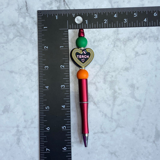 Red Beaded Pen with Heart Teach Character Bead