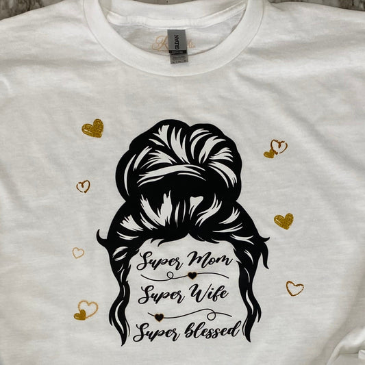 Glitter Gold Heart Super Mom DTF T-Shirt